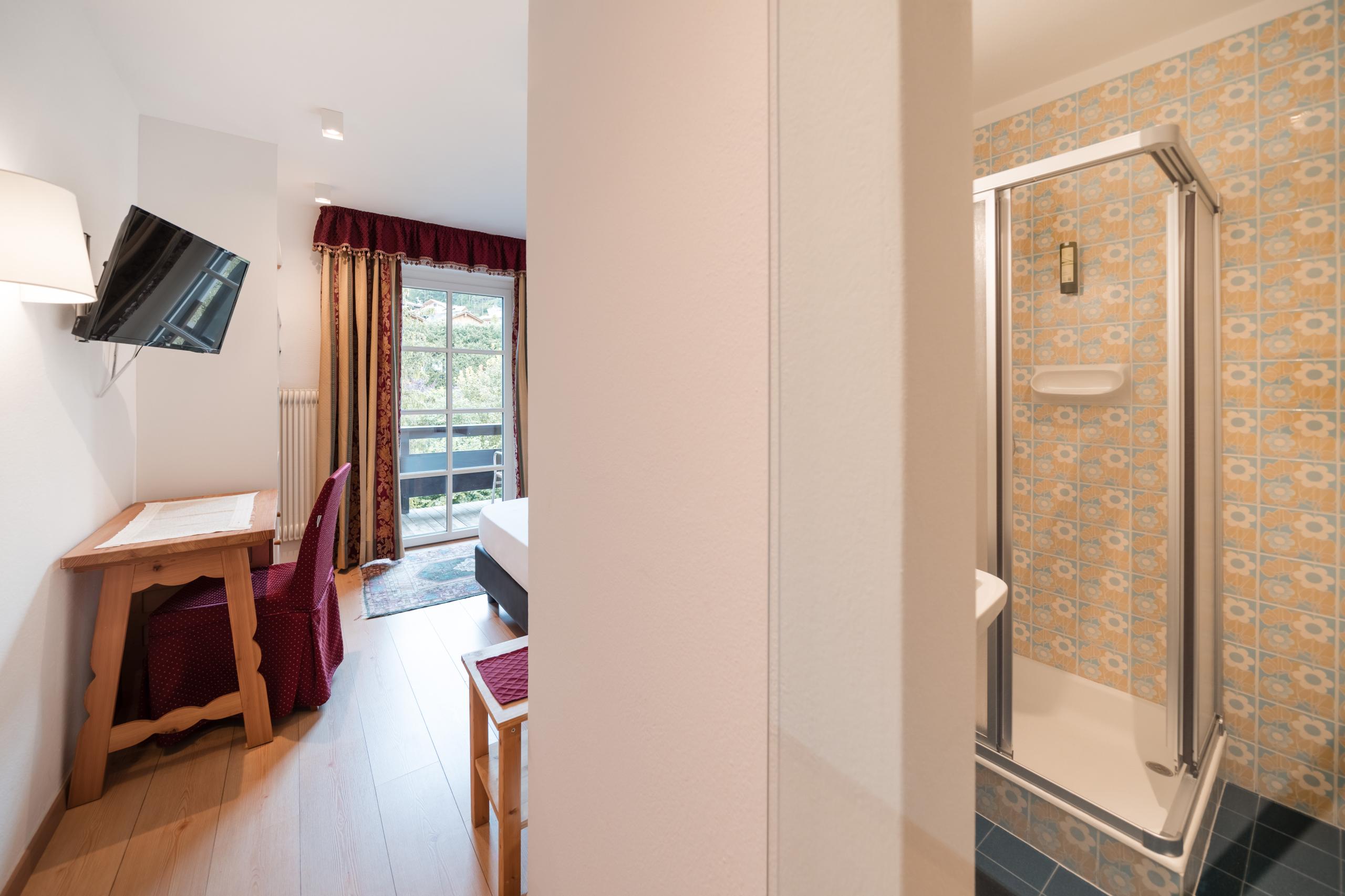 Viaggiare da soli non è mai stato così bello. La vostra camera singola è un rifugio di puro comfort in legno naturale e dettagli color lampone. E il bagno? In autentico stile vintage per un tuffo negli anni ’70.